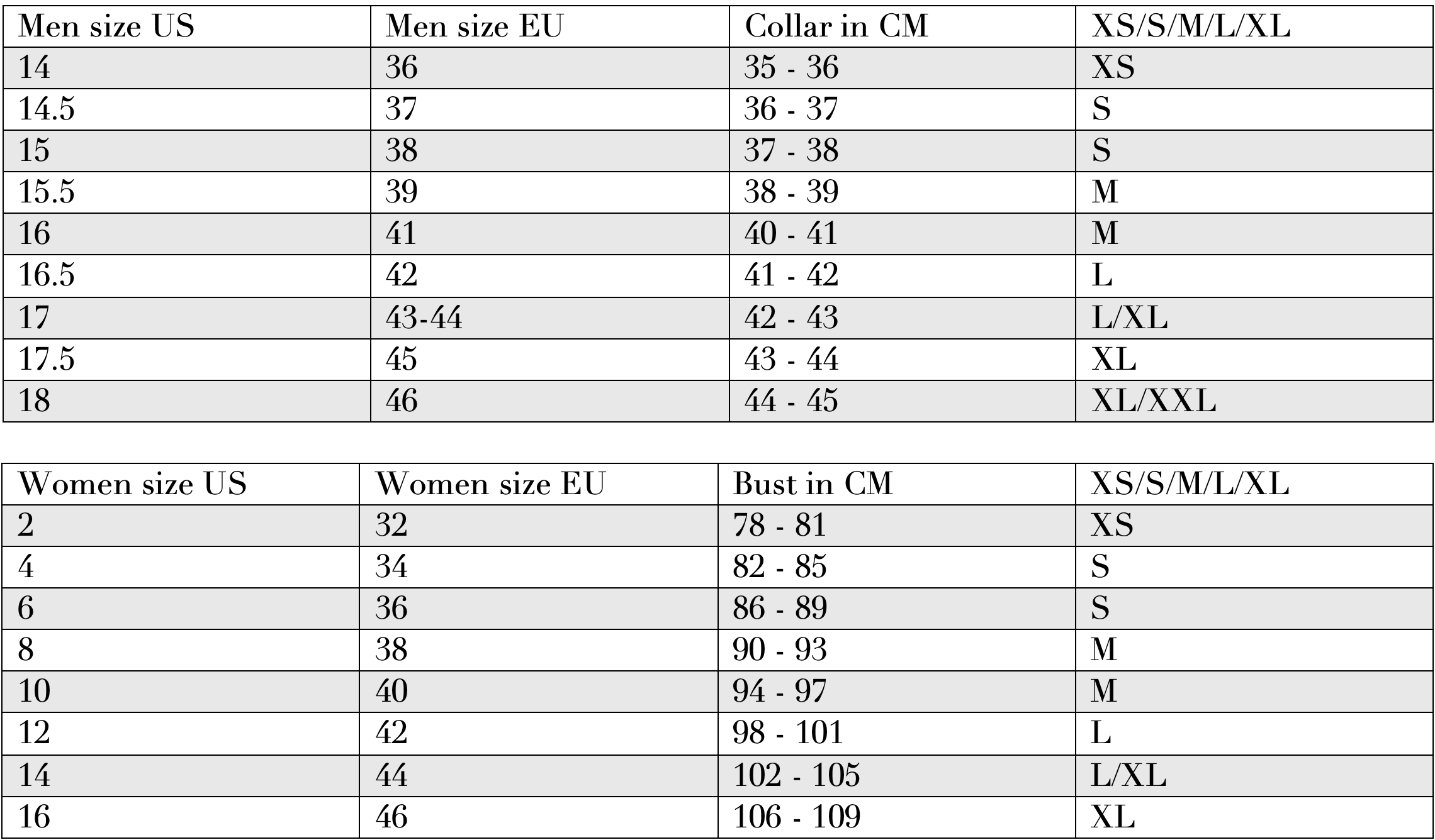 All About Polo, t-Shirt & Top Sizing