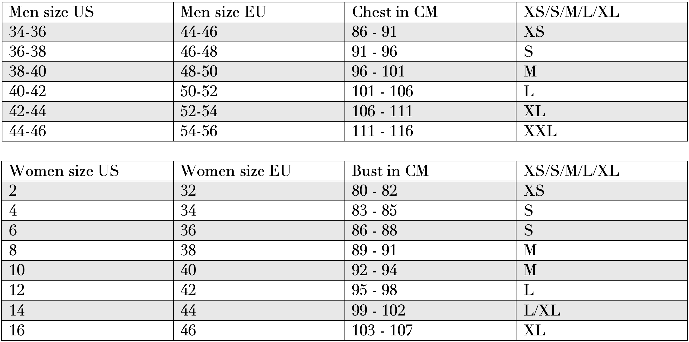 The size indicated in the product details follows EU sizing and is based on whether the garment was originally designed for men or women. That said, many men’s pants fit women just as well, and vice versa. If an item is labeled unisex, it simply means it’s not possible to determine whether it was initially made for men or women.